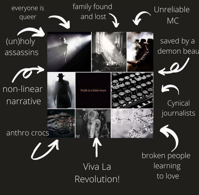 In the Queer Croc WIP, the crafting of a found family and the breaking of it is a reflection of what rebellion and great loss can do to people, but also examines the foundation of a found family. If you only find each other because you want to fight against something, what happens when that something changes for people? Or when people get tired of the fight and want to move on? Or the various ways people deal with grief and how that can exasperate existing but mostly tolerated tensions? Or what if people simply change and grow and that family that saved your life as a teen is no longer the family you need as an adult?